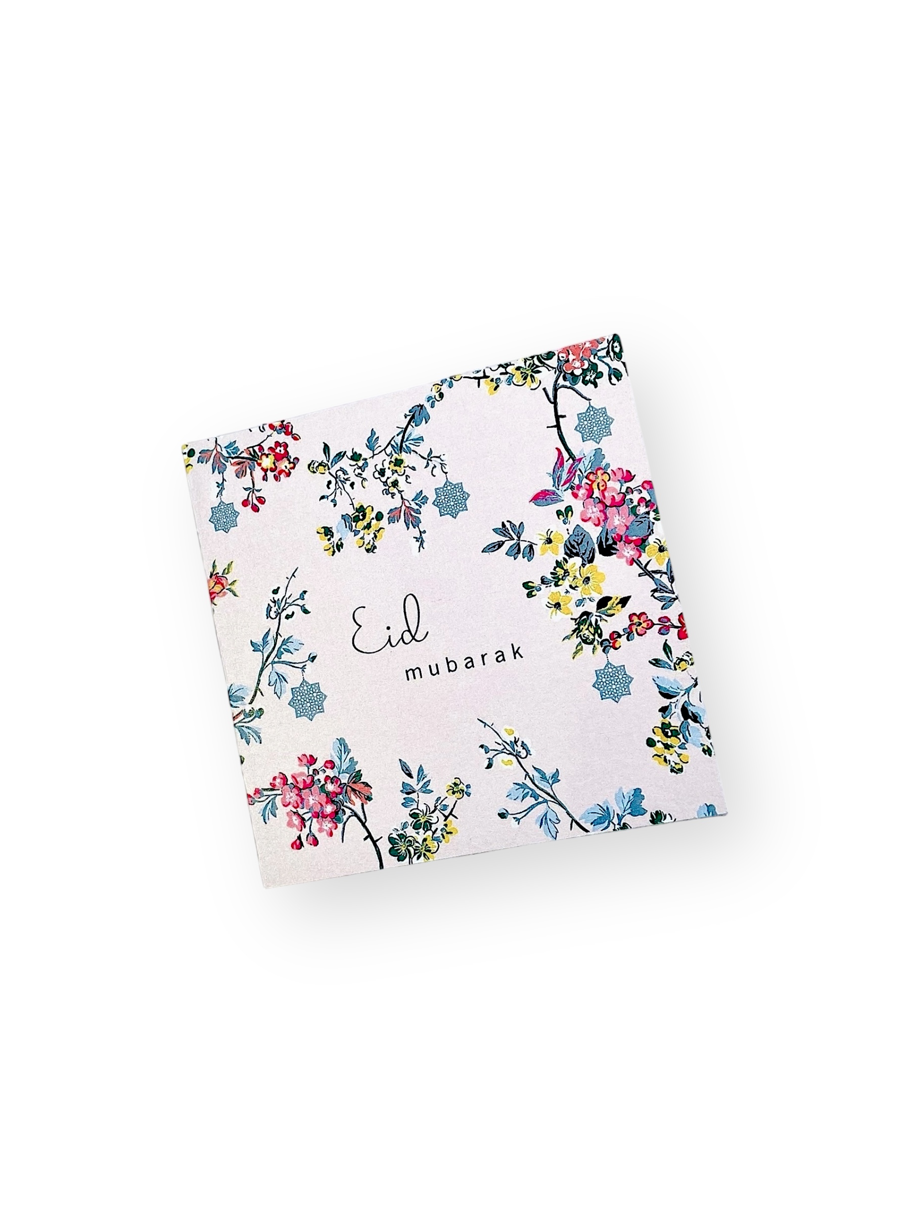 Celebrate the joy of Eid with this beautifully designed greeting card featuring powder pink background adorned with colorful floral motifs. At the center, the traditional “Eid Mubarak” message is elegantly displayed, making it a heartfelt way to share blessings and festive cheer.
