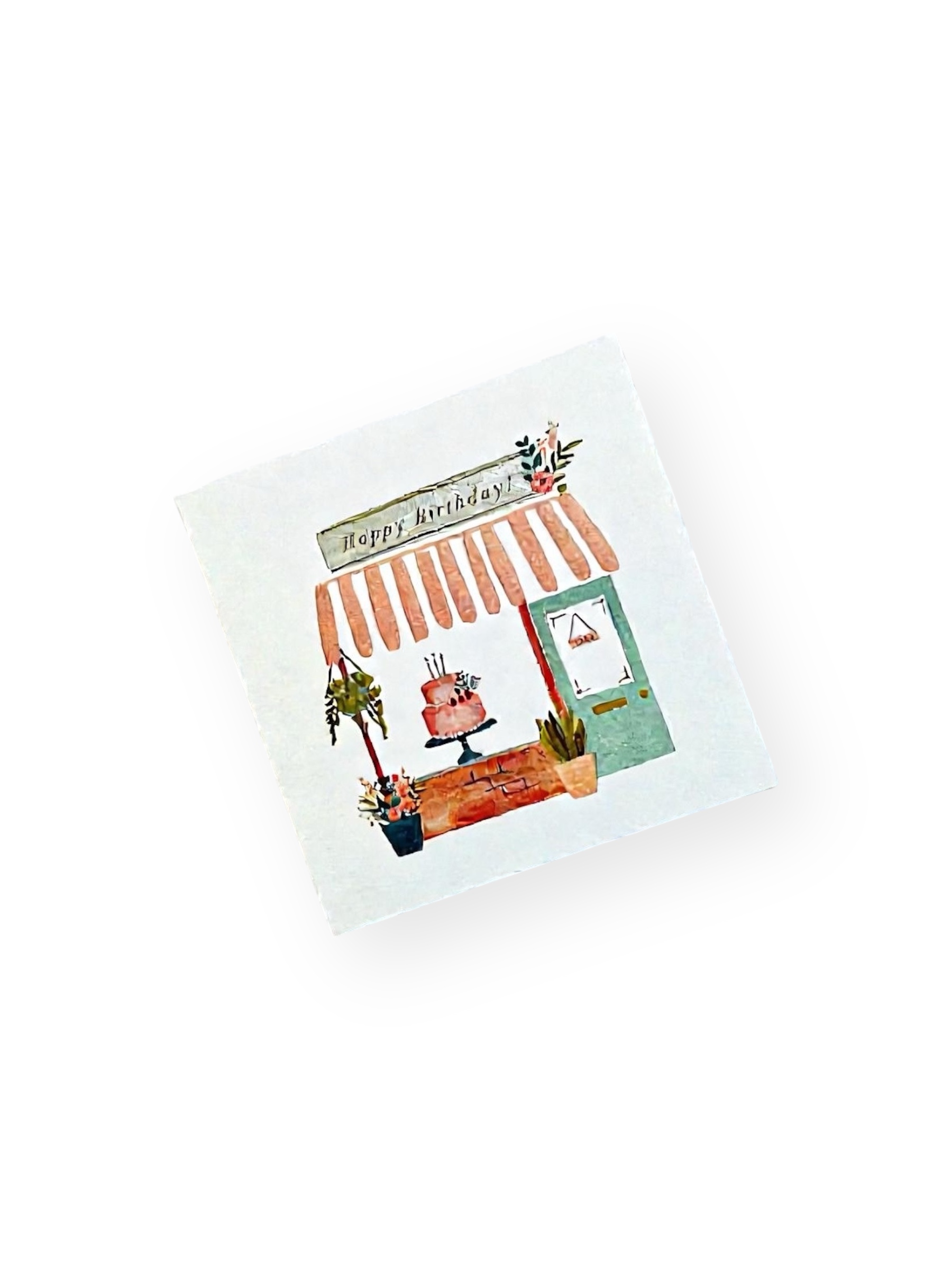 This festive greeting card showcases a whimsical storefront illustration. The vibrant colors and playful details capture the joy of celebration, making this card perfect for birthdays of all ages. Whether for a friend, family member, or colleague, it’s a thoughtful way to share warm wishes on their special day.