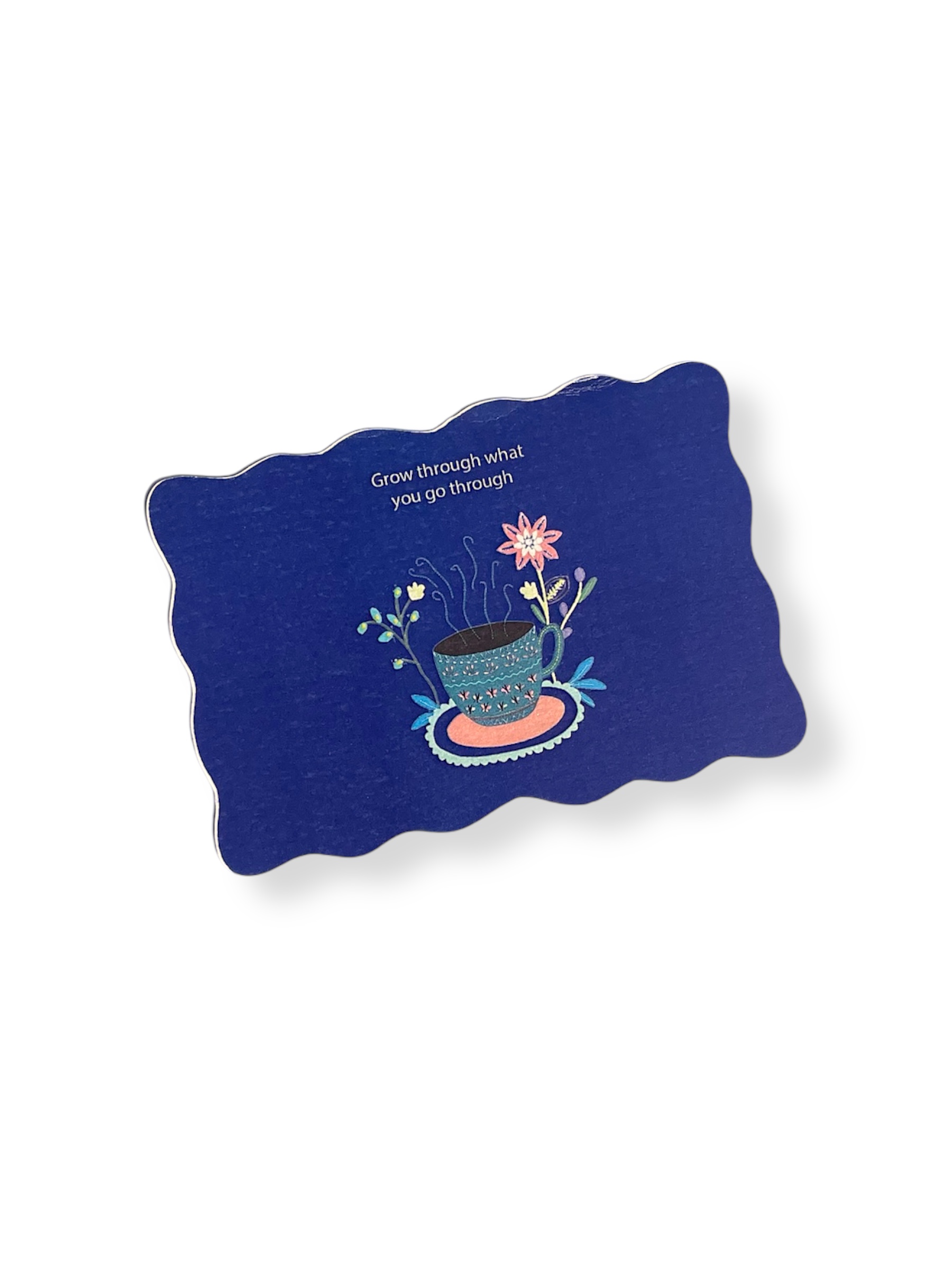 Share encouragement and positivity with this beautifully designed greeting card. Featuring scalloped edges and a deep blue background.