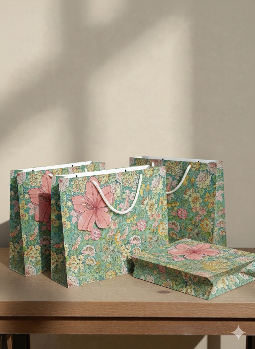 Made from eco-friendly paper with sturdy handles and big cutwork flowe tag, it’s a timeless choice for thoughtful gifting.