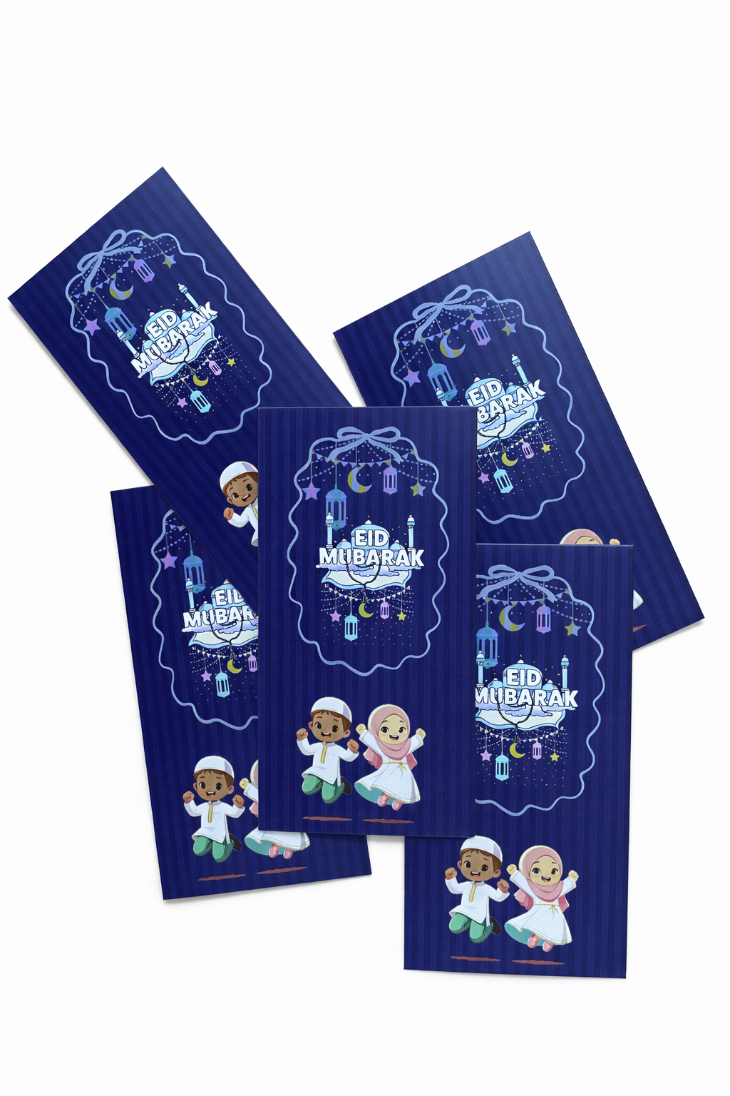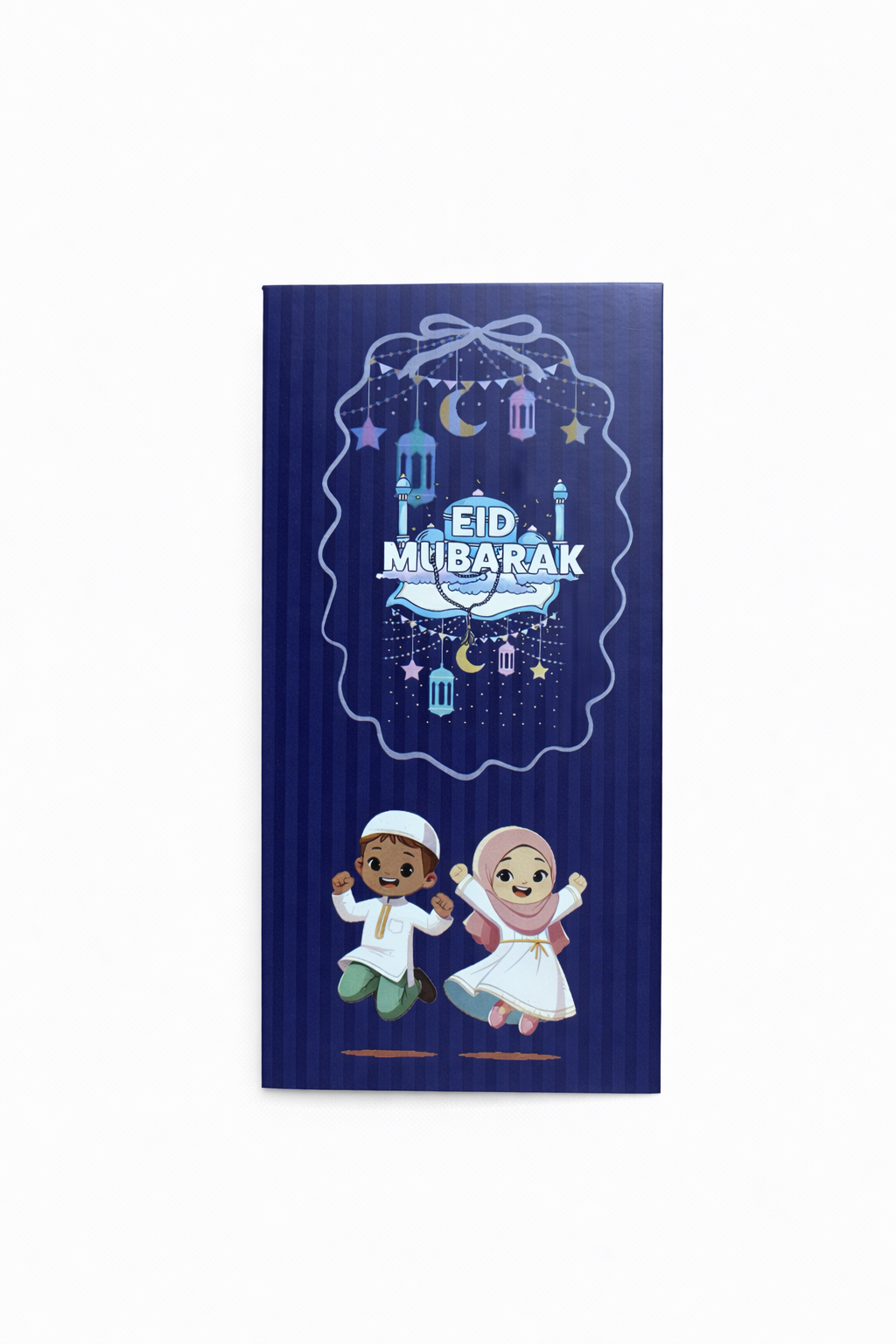 Celebrate the joy of Eid with our vibrant Kids’ Special Eid Money Envelope, designed to make gifting even more delightful. Featuring a festive dark blue backdrop with cheerful lanterns & crescent moons, this envelope captures the spirit of the occasion. The playful design showcases happy cartoon characters in traditional attire, symbolizing the excitement and warmth of Eid celebrations.