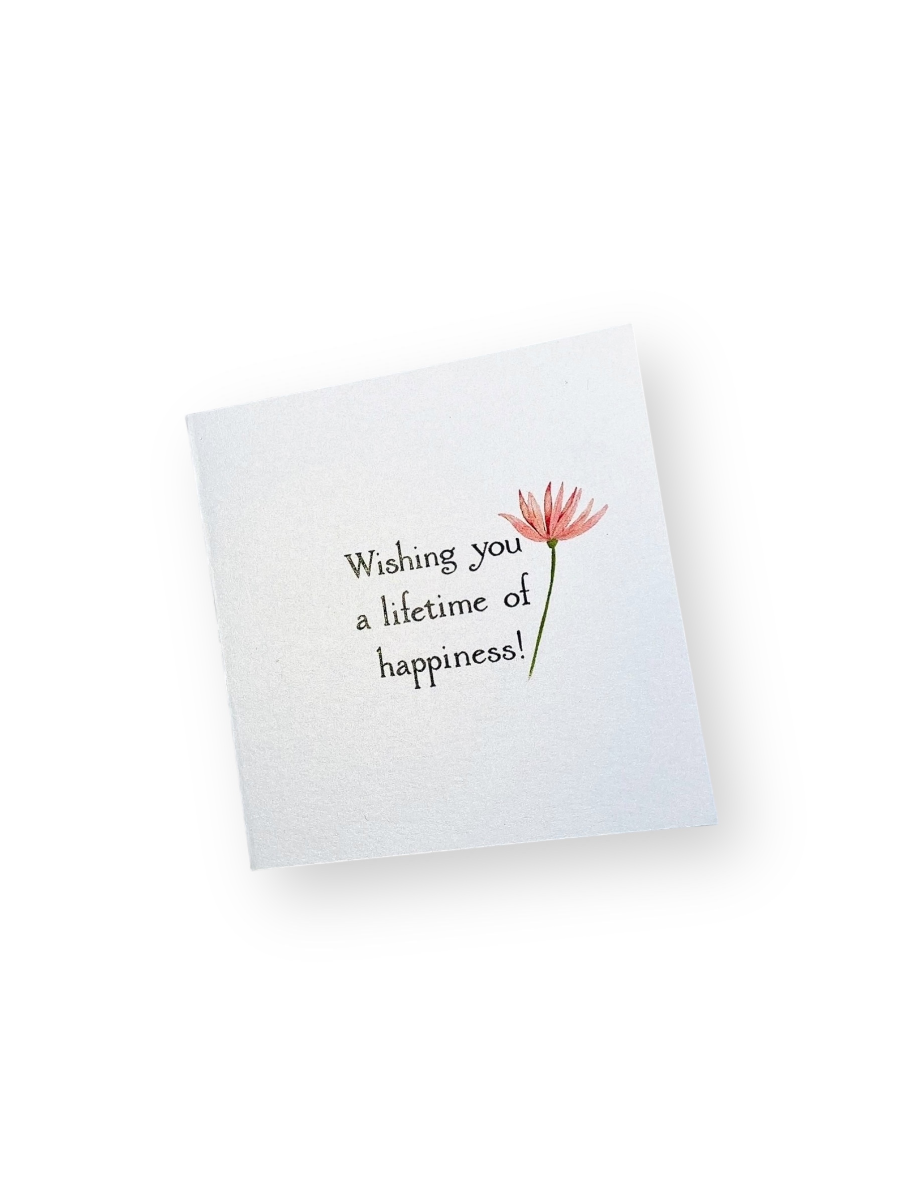 This minimalist greeting card radiates warmth and positivity with its clean white background and delicate illustration of a single pink flower.